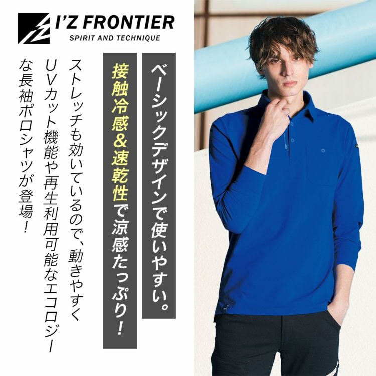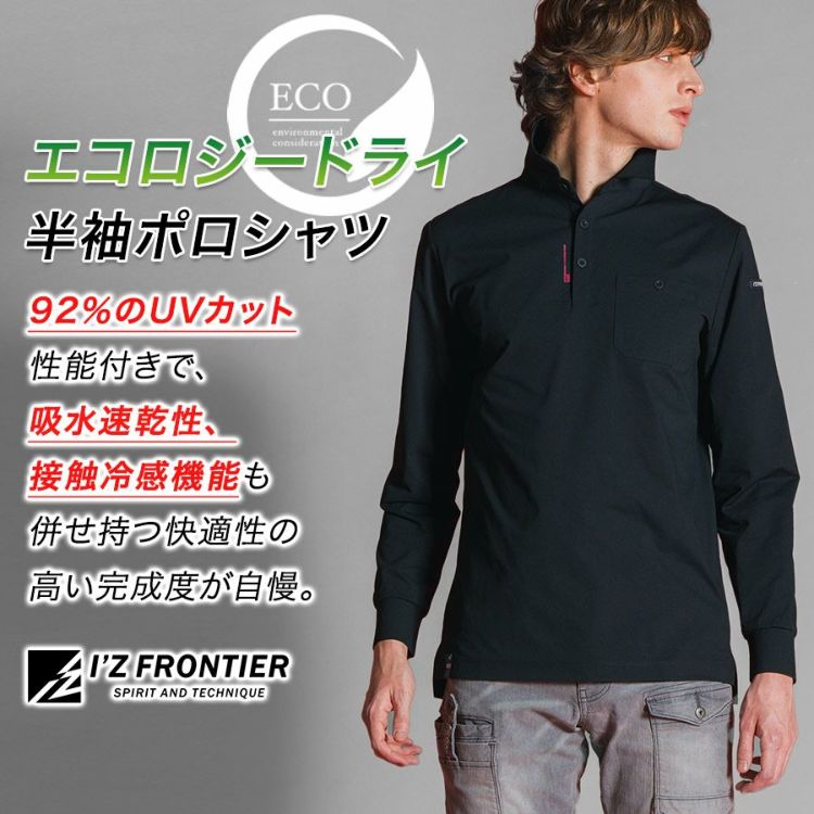 男性 メンズ トップス ポロ ポロシャツ 長袖 ユニフォーム 制服 接触冷感 速乾 猛暑 暑さ対策 ストレッチ UVカット機能 UV 紫外線対策 吸水速乾 速乾 通勤 仕事 作業着 作業 ワークウェア ブラック 現場 DIY キャンプ 釣り バイク 屋外作業 アウトドア デイリーウェア スポーツ 20代 30代 40代 50代 60代 夏 晩夏 真夏 春 秋 I'Z FRONTIER アイズフロンティア アイズ