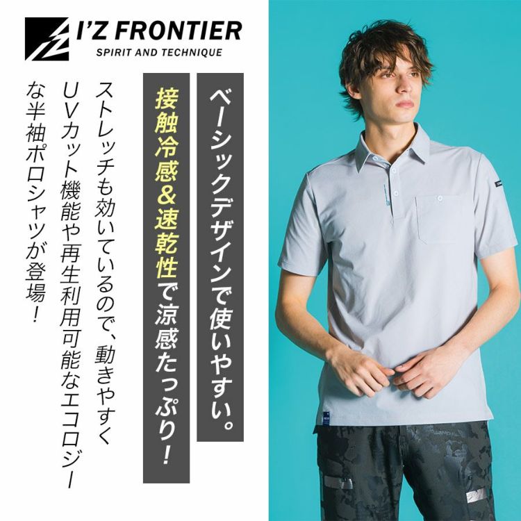 男性 メンズ トップス ポロ ポロシャツ Tシャツ 半袖 ユニフォーム 制服 接触冷感 速乾 猛暑 暑さ対策 ストレッチ UVカット機能 UV 紫外線対策 吸水速乾 速乾 通勤 仕事 作業着 作業 ワークウェア ブラック 現場 DIY キャンプ 釣り バイク 屋外作業 アウトドア デイリーウェア スポーツ 20代 30代 40代 50代 60代 夏 晩夏 真夏 I'Z FRONTIER アイズフロンティア アイズ