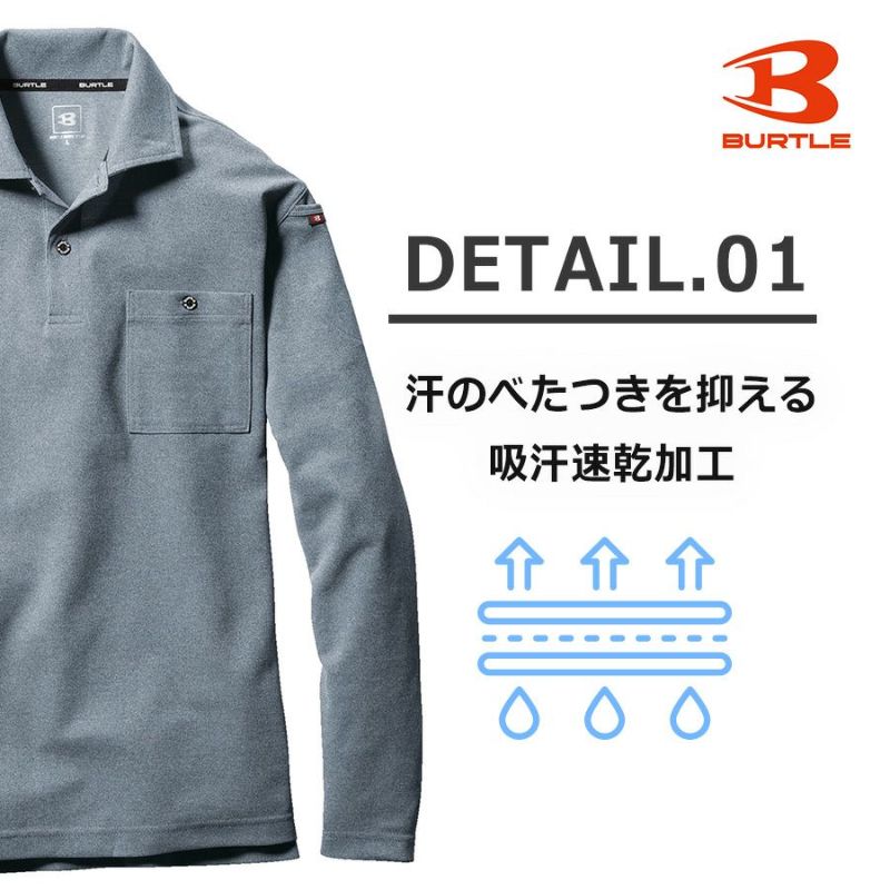 バートル 吸汗速乾 DRY カノコ長袖ポロシャツ 665 BURTLE メンズ トップス インナー 作業服 作業着 吸汗速乾ドライ