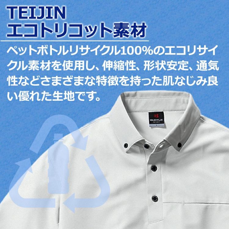 バートル BURTLE ポロシャツ SDGs エコ ボタンダウン 作業服 ユニセックス 男女兼用 ワークウエア 半袖 ストレッチ 吸汗速乾 リサイクルエコ 制電ケア 消臭 オールシーズン 半袖シャツ
