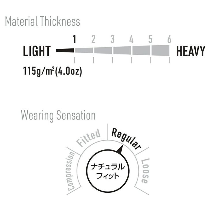 素材/エコトリコット、TEIJINペットボトルリサイクル、吸汗速乾、消臭、制電ケア設計、ストレッチ(伸長率25%以上)、UVカット(90%以上)