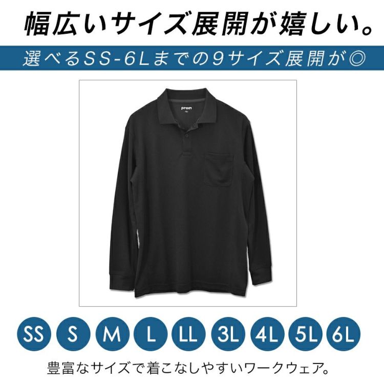 【4L-6L】プロノ DRY長袖ポロシャツ PR-2513 ドライ 吸汗速乾 メンズ インナー トップス 作業着 作業服 制服 ユニフォーム Prono【25秋てま】