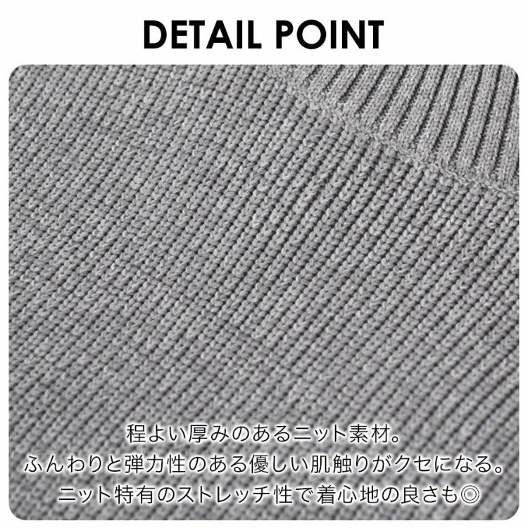 ・ほどよい厚みの二ット生地だから、インナーにシャツを重ねたり、 アウターを上に重ねてもごわつかずスッキリとしたシルエットラインが楽しめます。