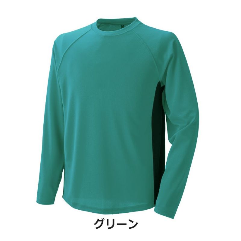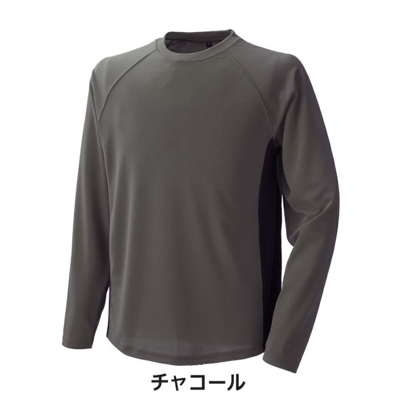 吸汗速乾性、抗菌消臭、UVカット加工付きで暑い日にぴったりの長袖Tシャツ。