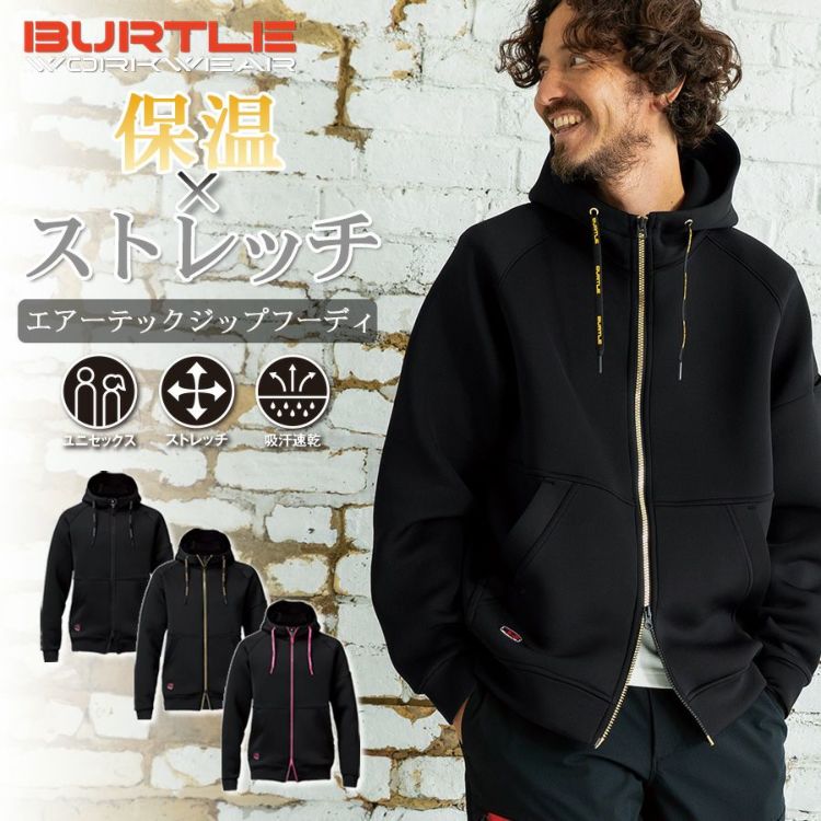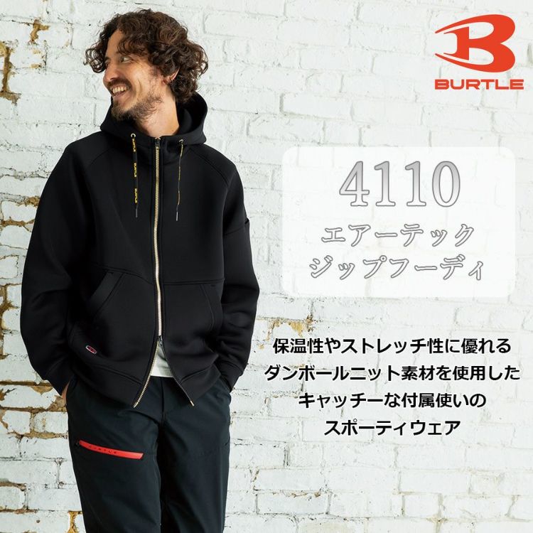 バートル エアーテックジップフーディ 4110 メンズ 秋冬 作業服 作業着 パーカー ダンボールニット ストレッチ BURTLE