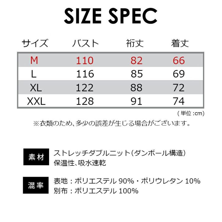 素材/ストレッチダブルニット(ダンボール構造)、保温性、吸水速乾