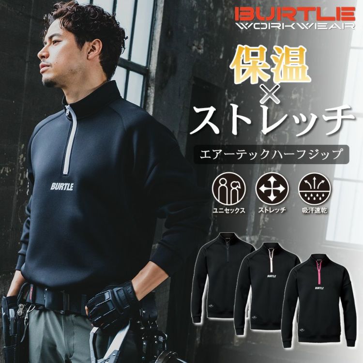 バートル エアーテックハーフジップ 4111 メンズ レディース 秋冬 作業服 作業着 パーカー ダンボールニット ストレッチ BURTLE