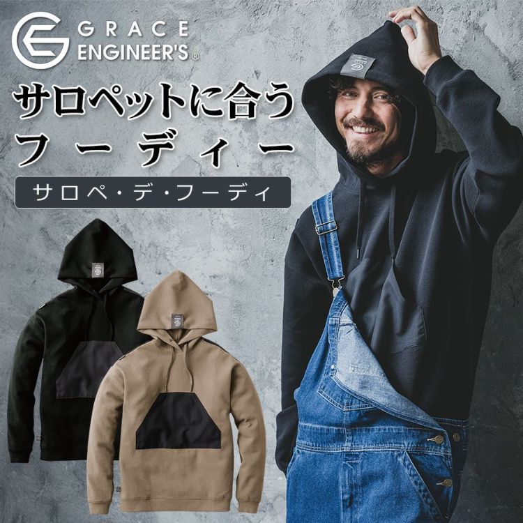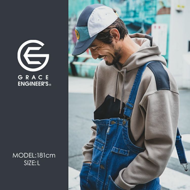 グレイスエンジニアーズ サロペ・デ・フーディー GE-3004 メンズ レディース パーカー プルオーバー サロペット オーバーオール おしゃれ GRACE ENGINEER'S