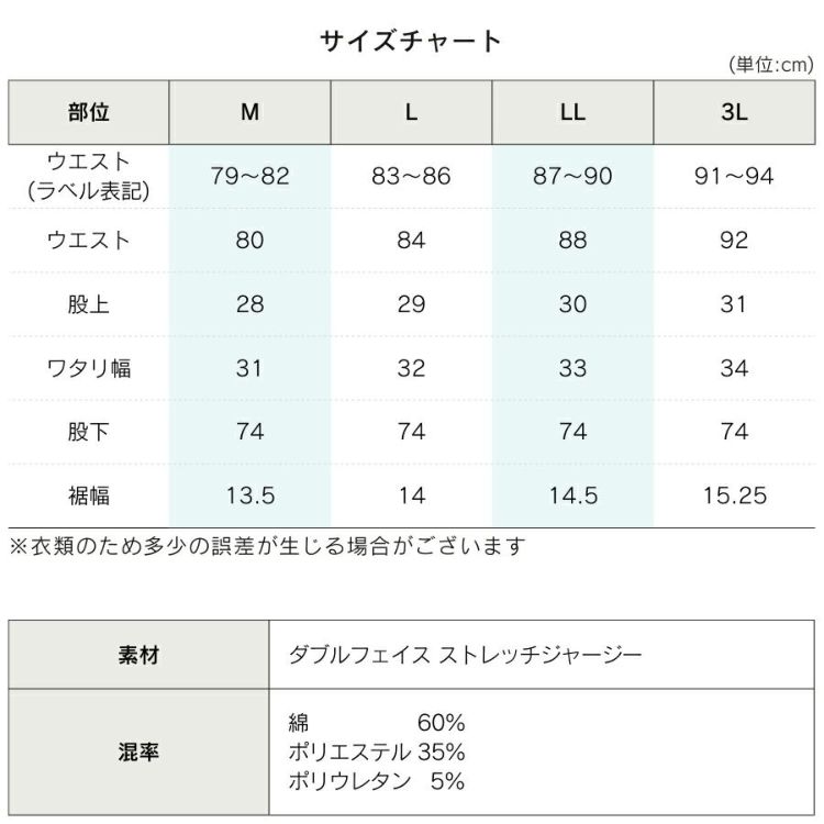 混率:綿60%、ポリエステル35%、ポリウレタン5%