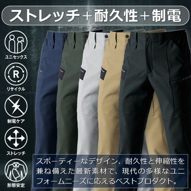パンツ カーゴ ズボン 作業ウェア 作業着 ワークウェア ストレッチ SDGs 耐久性 帯電防止 エコディア ユニセックス