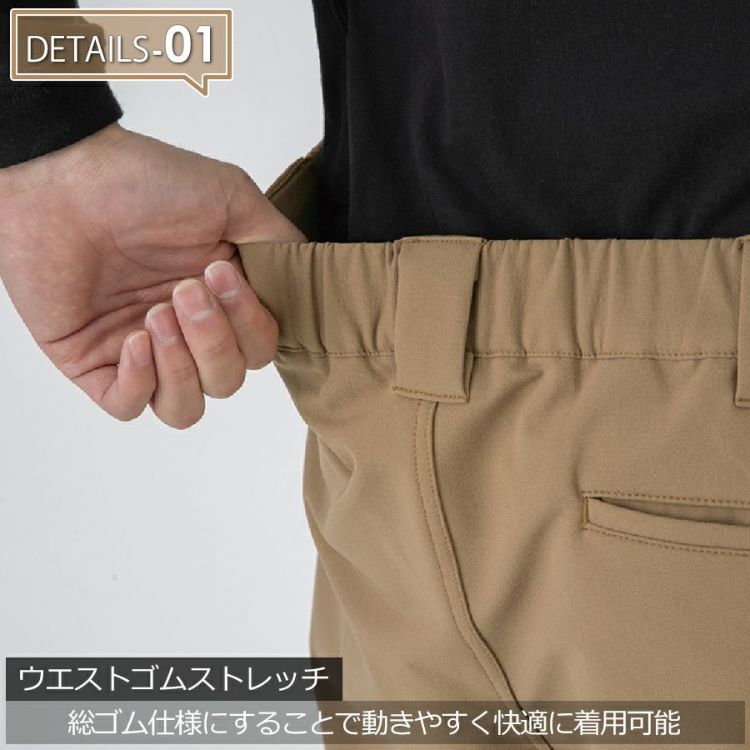 ・ウエストがゴム仕様で快適なフィット感を実現し、内側のドローコードでベルトなしでも調整可能。 便利なマルチポケット、カラビナループ等、快適さと機能性を両立した、日常使いからビジネスまで活躍する一着です。