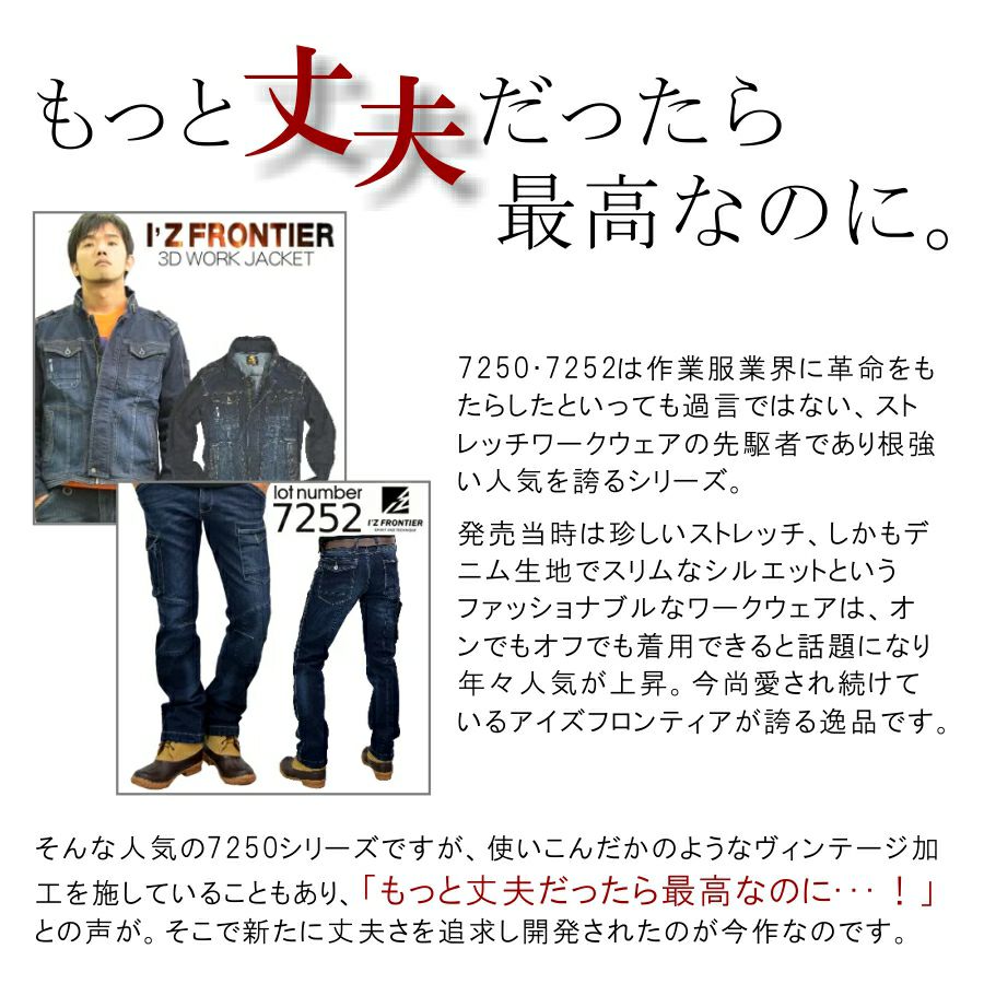 他の画像を見る 【4L-5L】「I'Z FRONTIER(アイズフロンティア)」ストレッチ 3Dワークカーゴパンツ/#7252 デニム 作業服 作業着 作業ズボン メンズ ¥ 5,995 税込 在庫切れ デニムなのに軽いデニムなのに伸びる!新世代ワークウェア! カートに入れる お気に入りに登録する