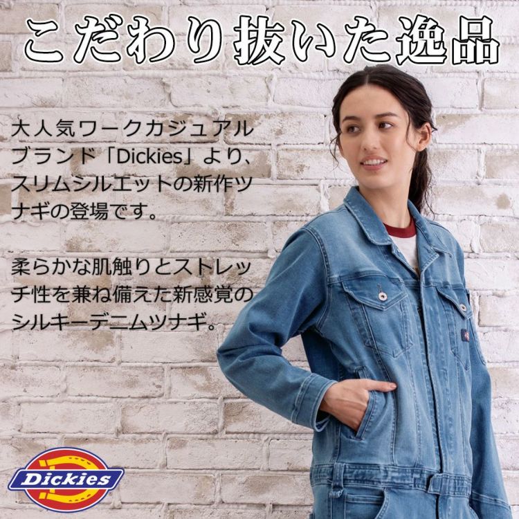 ディッキーズ ストレッチシルキーデニムツナギ D-686 つなぎ 長袖 デニム オールインワン おしゃれ ユニセックス 男女兼用 メカニック DIY アウトドア ガーデニング 農作業 Dickies