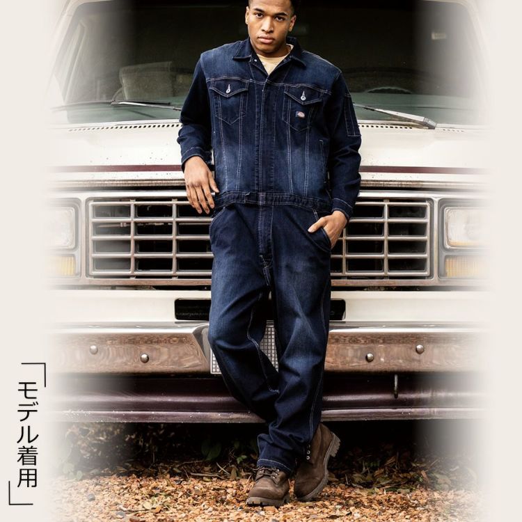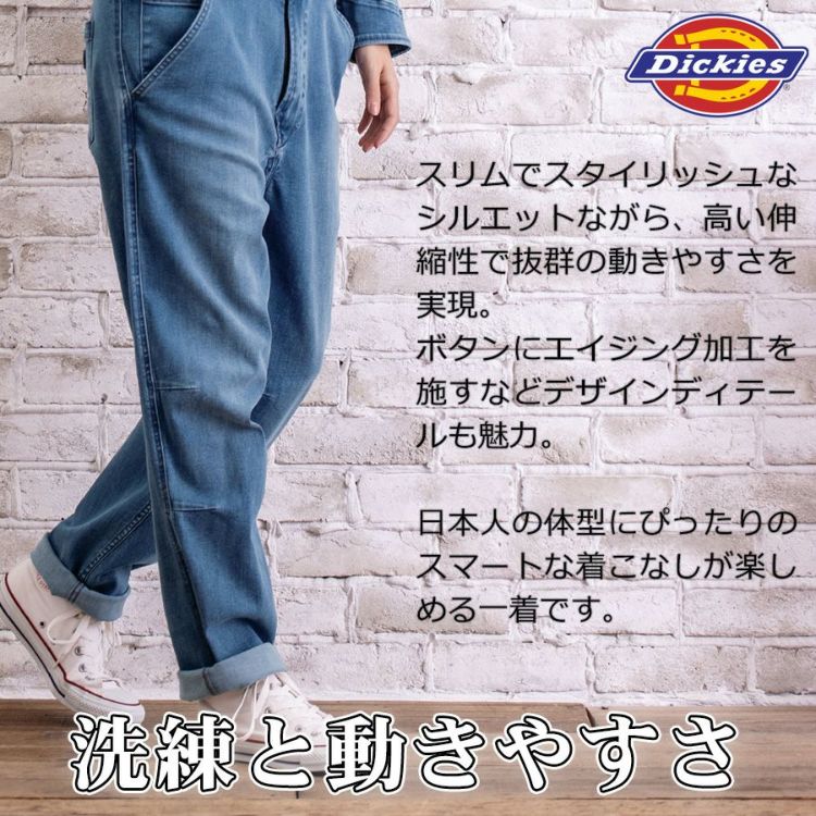 Dickies ディッキーズ デニム スリム ツナギ 作業着 作業服 ストレッチ ワークウェア アウトドア ユニセックス ポケット カラビナループ