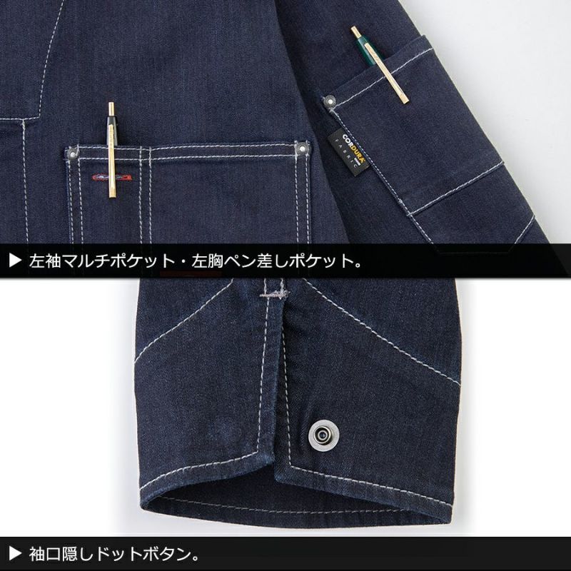 左袖マルチポケット・左胸ペン差しポケットなど収納も豊富です。