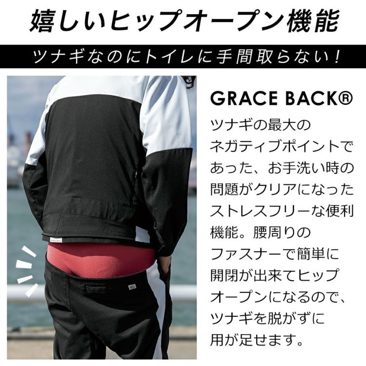 ツナギ つなぎ 男性 メンズ ストレッチ 帯電防止 ヒップオープン ヒップオープン機能 多機能ポケット M L LL 3L 仕事 作業着 作業 ワークウェア 現場 電気工事 エンジニア 化学工場 インフラ整備 防災 制服 ユニフォーム 作業 アウトドア GRACE BACKR 特許第 7054284 号 20代 30代 40代 50代 60代 GRACE ENGINEER'S グレイスエンジニアーズ