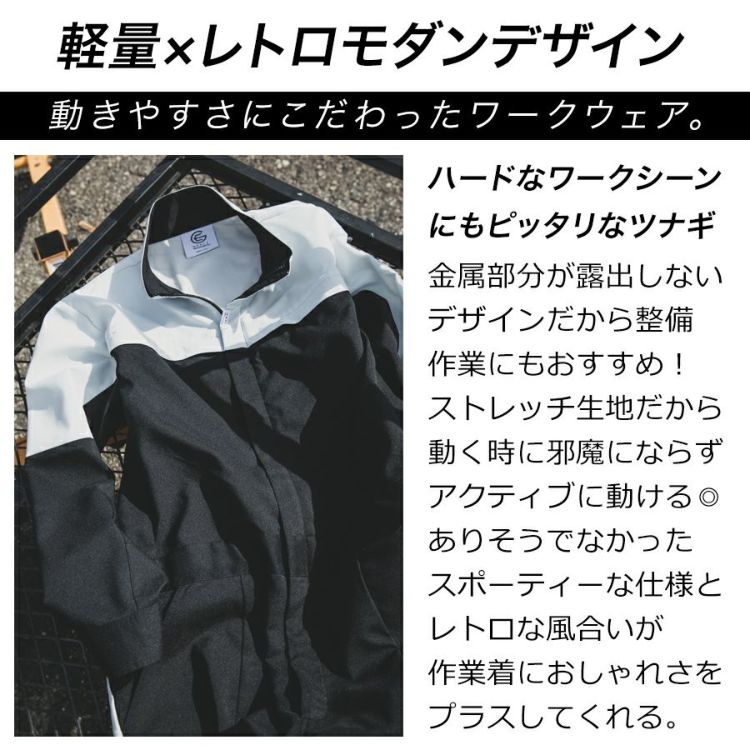 1956年創業のツナギ専門メーカー「エスケー・プロダクト」が展開するブランド 「GRACE ENGINEER'S(グレースエンジニアーズ)」のノウハウを生かした、 レトロモダンなヒップオープン機能付きのストレッチツナギが登場しました。