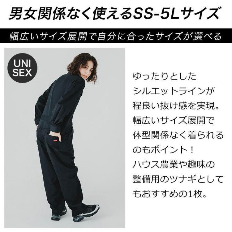 サイズも豊富に、SS~ガッシリ体型の5L、更に身長そのままで身幅ゆったりなB体サイズまで展開しており、個人着用は勿論のことチームで揃えてユニフォーム使いもできてしまう、まさにオールマイティーなツナギです。