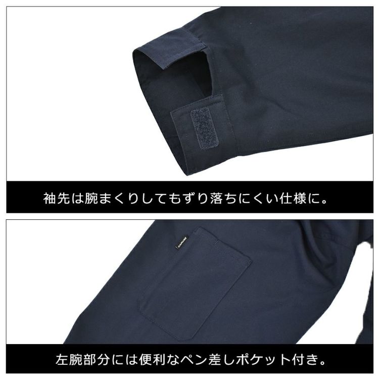 洗濯などでのお手入れや管理が難しそうなツナギですが、 高機能の生地を使用したこのDRY-X超速乾ツナギなら、気兼ねなく着用いただけます。