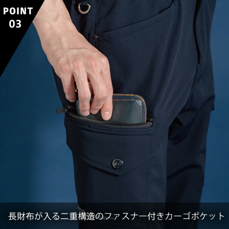 長財布が入る二重構造のファスナー付きカーゴポケット