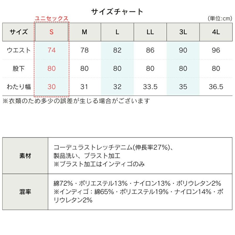 ※インディゴ:綿65%・ポリエステル19%・ナイロン14%・ポリウレタン2%