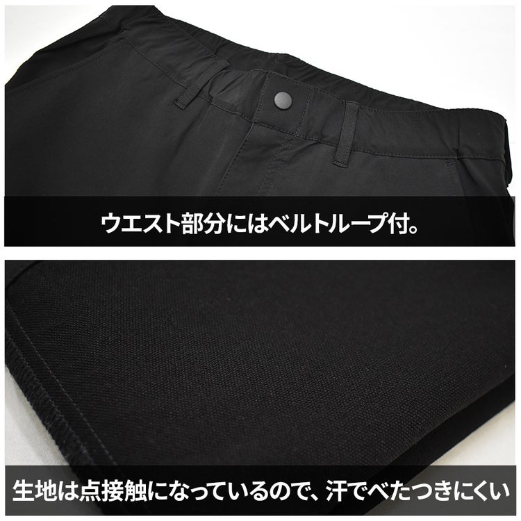 ★汗をかいてもべたつきにくい点接触の裏生地や動きやすいクライミングカット仕立て。