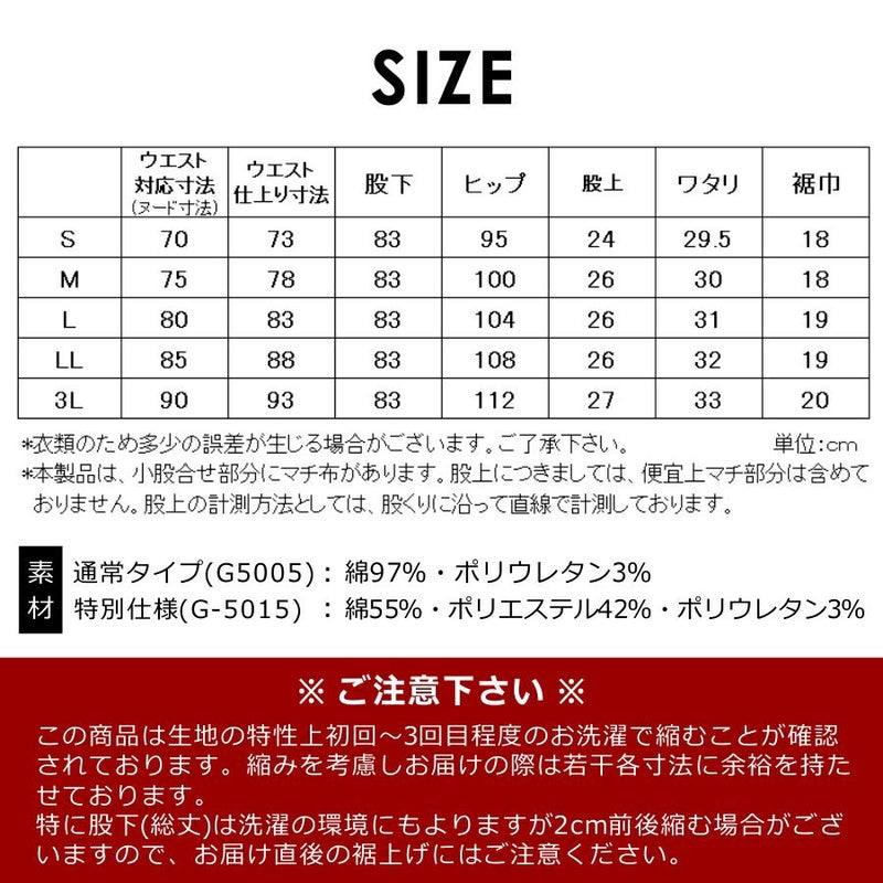 特別仕様(G-5015):綿55%・ポリエステル42%・ポリウレタン3%