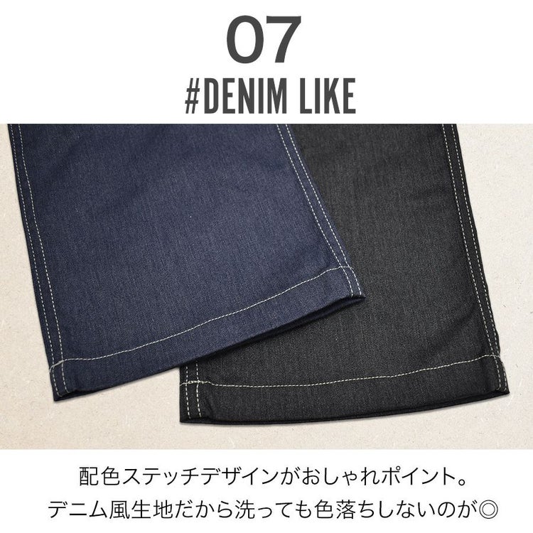 ウエストはバックが総ゴム仕様になっていて、ラフな大人の余裕を感じさせ、動きやすさとオシャレを両立したデニム風パンツになりました。