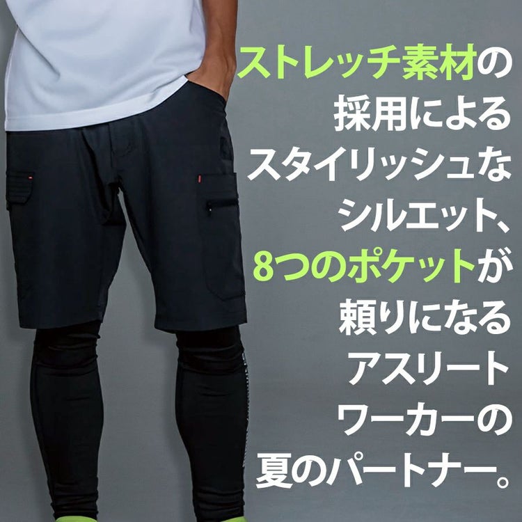 タイツとの相性も抜群で、作業着に、スポーツ用として多方面で活躍するショートカーゴパンツです。