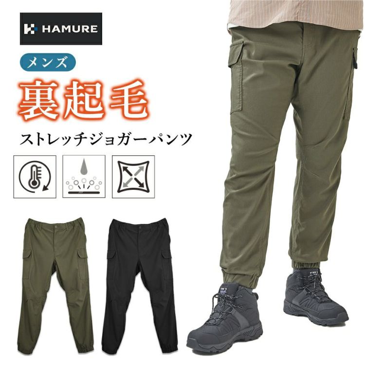 ハミューレ 裏起毛ストレッチジョガーパンツ HMU-2535 メンズ 秋冬 暖 パンツ カーゴパンツ 動きやすい 防寒 冬 作業服 作業着 作業ズボン プロノ HAMURE