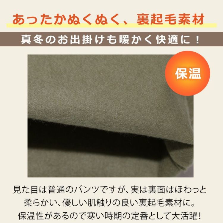 ・あったかぬくぬくの裏起毛パンツで、真冬のお出掛けも暖かく快適になります。
