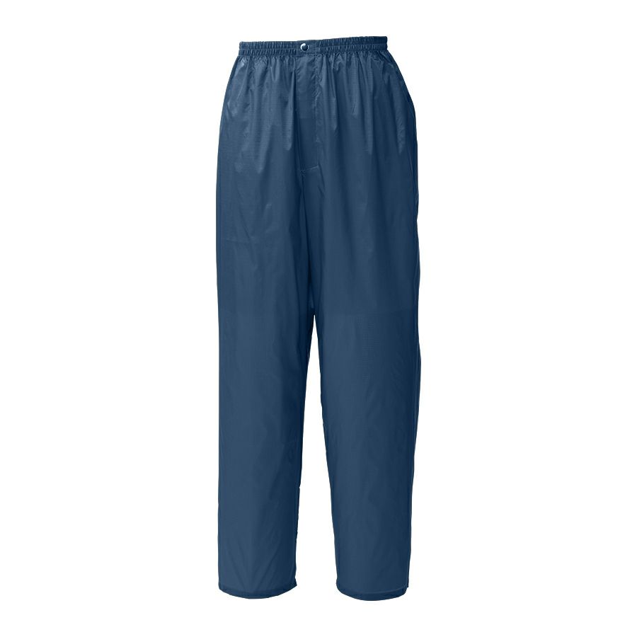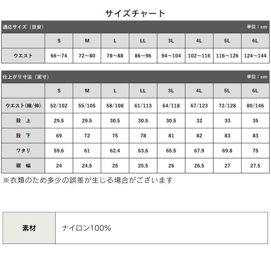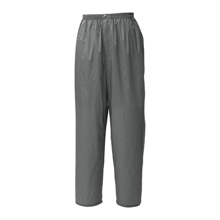 破れに強いリップストップ生地・軽量かつ丈夫なナイロン素材・防風・トイレに便利な前開きファスナー付き・ストレート裾