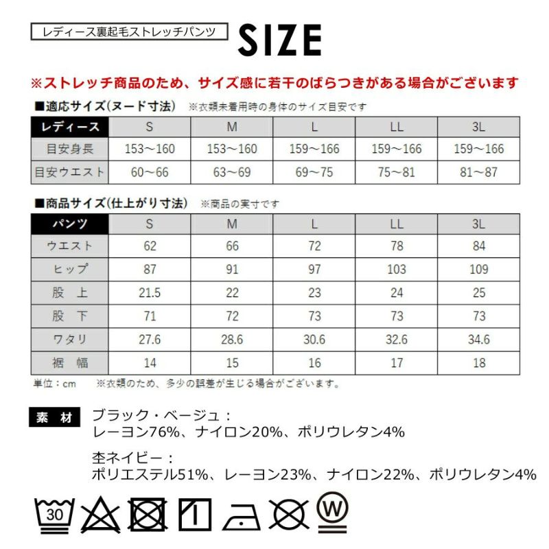 レディース裏起毛ストレッチパンツ