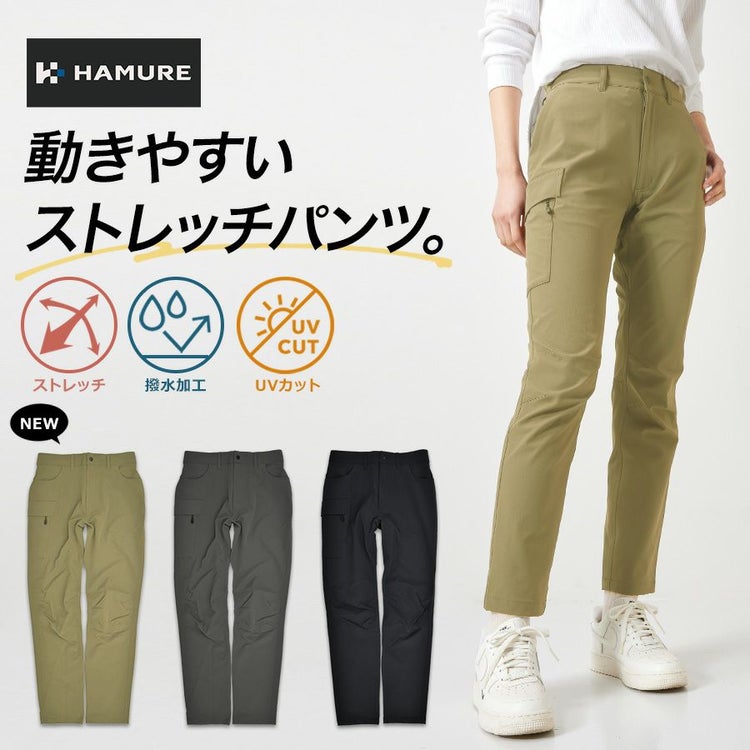 ハミューレ レディース ナイロンストレッチパンツ HMU-2524 撥水 UVカット 作業 仕事 アウトドア カジュアル おしゃれ HAMURE