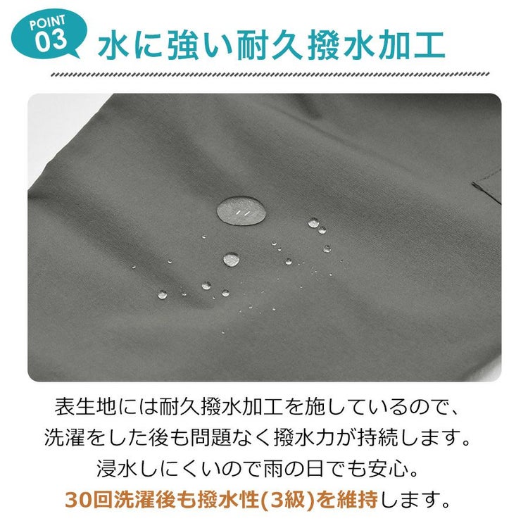 表生地には耐久撥水加工を施しているので、洗濯した後も問題なく撥水力が持続します。
