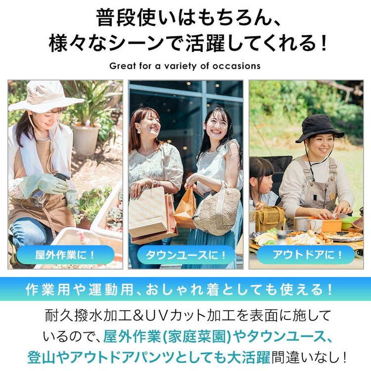 ・屋外作業やアウトドアに最適なUVカット加工を施しました。