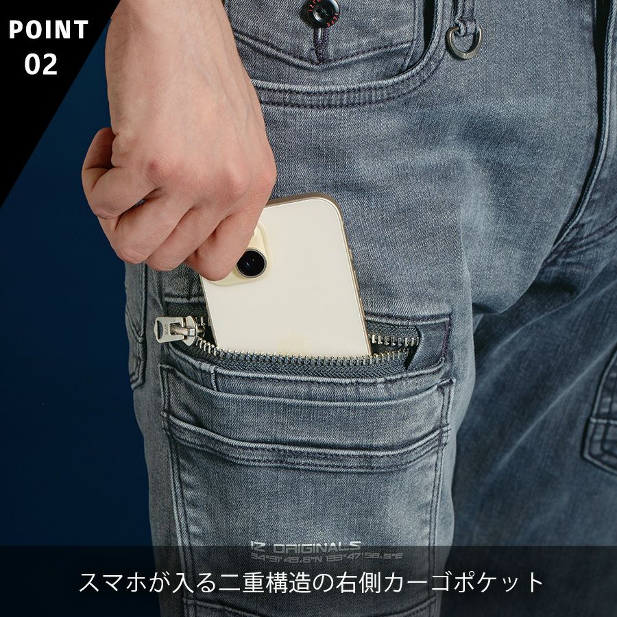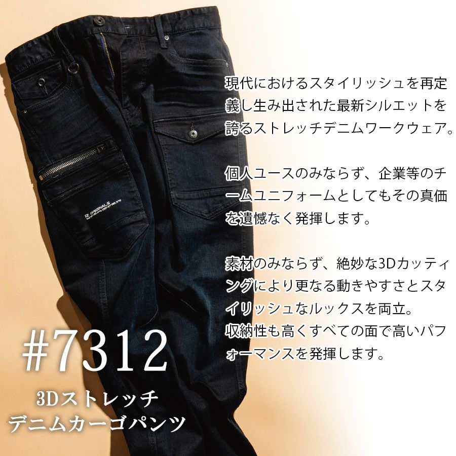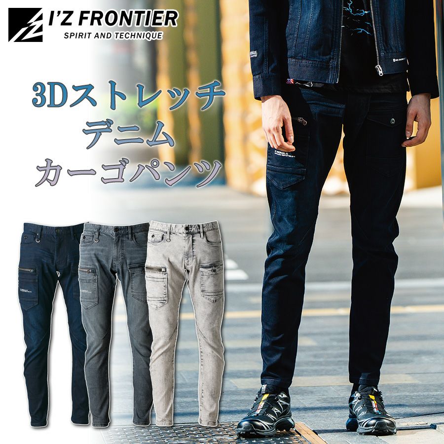 アイズフロンティア 3Dストレッチデニムカーゴパンツ #7312 メンズ 作業服 作業着 作業ズボン I'Z FRONTIER