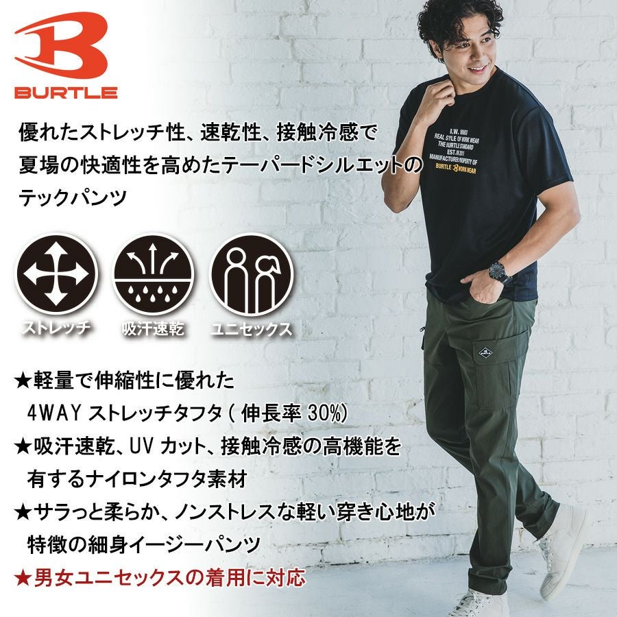 バートル ナイロンタフタカーゴパンツ 1022 メンズ ストレッチ 接触冷感 吸汗速乾 UVカット 夏物 作業服 作業着 作業ズボン BURTLE