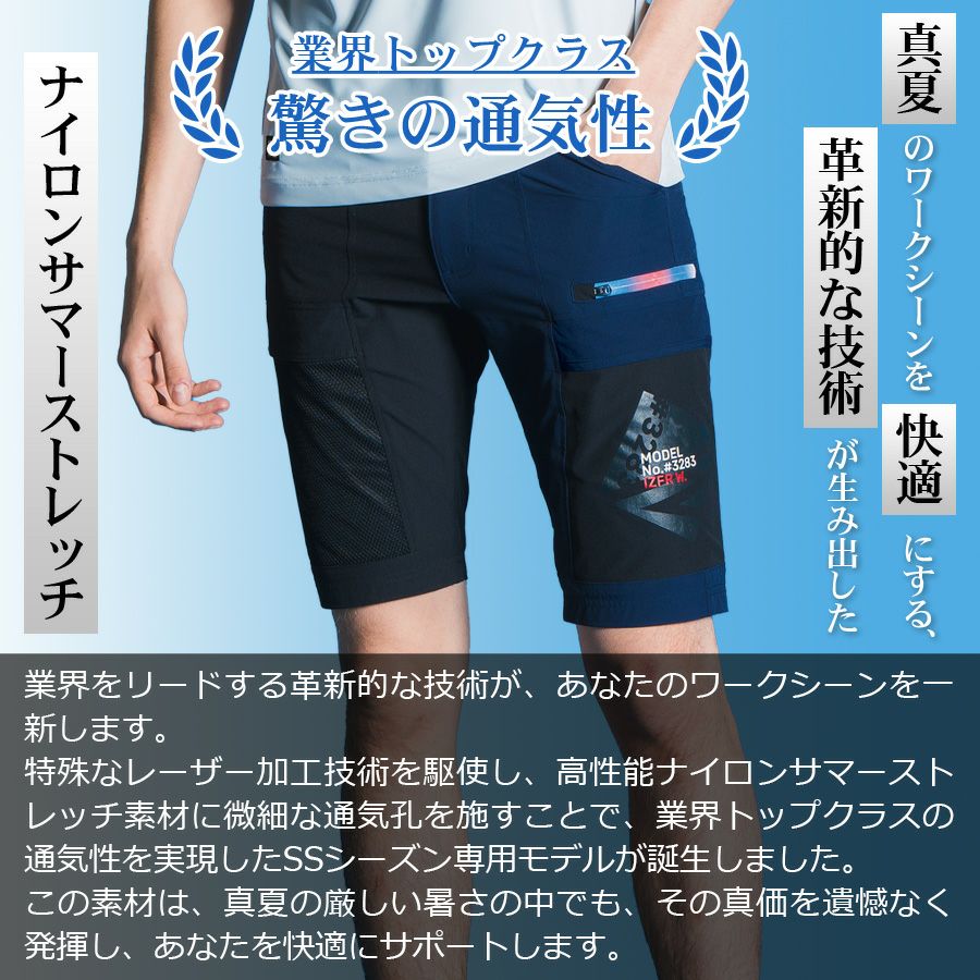 【数量限定】アイズフロンティア エアーダクトストレッチハーフパンツ #3283S メンズ 作業服 作業着 作業ズボン 春夏 通気 I'Z FRONTIER