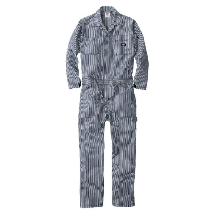 ディッキーズ ライトストレッチヒッコリーツナギ D-7106 長袖 メンズ レディース 作業着 作業服 接触冷感 軽量 UVカット ストレッチ 夏用 おしゃれ アメカジ Dickies