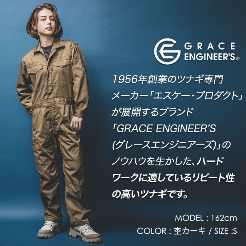 1956年創業のツナギ専門メーカー「エスケー・プロダクト」が展開するブランド 「GRACE ENGINEER'S(グレースエンジニアーズ)」のノウハウを生かした、 ハードワークに適しているリピート性の高いツナギ。