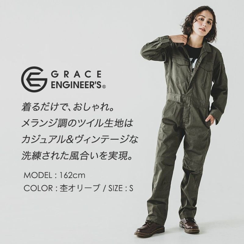 グレイスエンジニアーズ メランジ調ワンプリーツ長袖ツナギ GE-430 メンズ レディース 年間 ツナギ つなぎ オーバーオール 作業服 おしゃれ GRACE ENGINEER'S