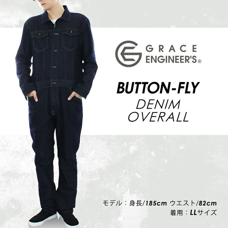 GE-600 グレイスエンジニアーズ GRACE ENGINEER'S デニム つなぎ オーバーオール ツナギ ワンウォッシュ サスペンダー機能 作業着 おしゃれ