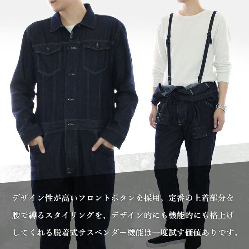 10.4oz の厚地デニムを使用したカジュアルライクなツナギ。