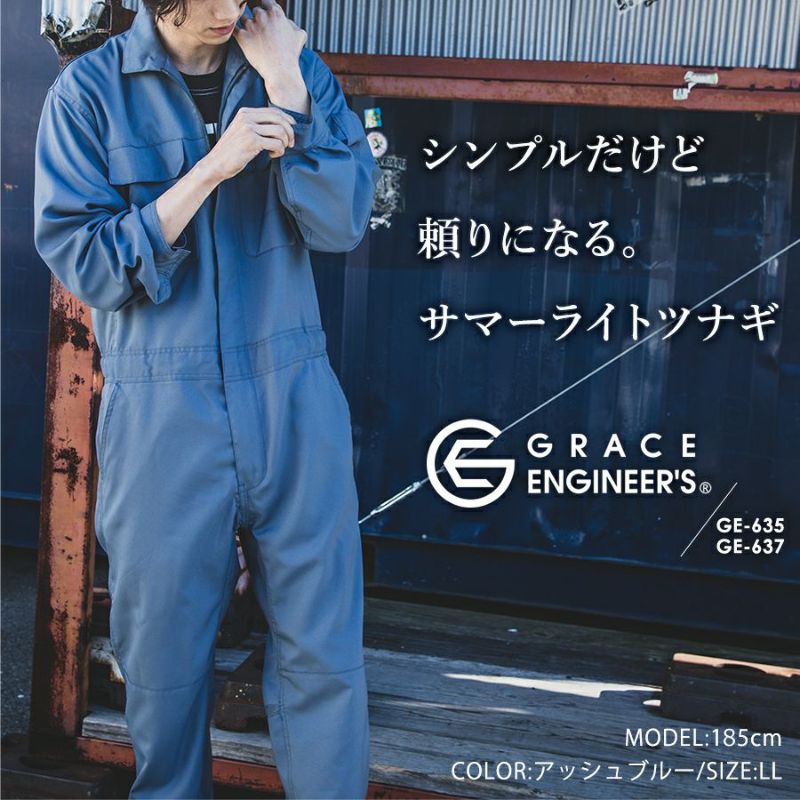【長袖・半袖】グレイスエンジニアーズ サマーライトツナギ GE-635 GE-637 メンズ 作業服 作業着 夏物 おしゃれ プロノ GRACE ENGINEER'S