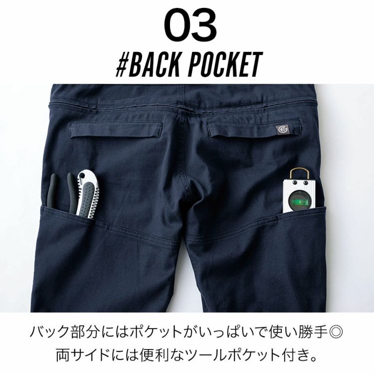 長きにわたり支持が多いコットン素材に今の時代の定番機能であるストレッチ性もしっかり ある中厚の生地ですので、ハードなワークシーンにもピッタリなツナギです。