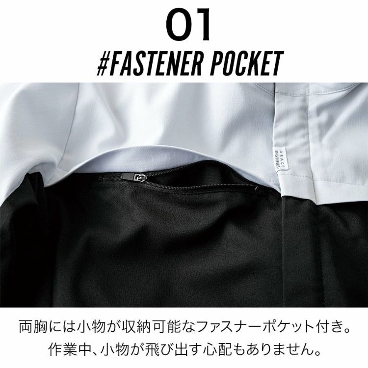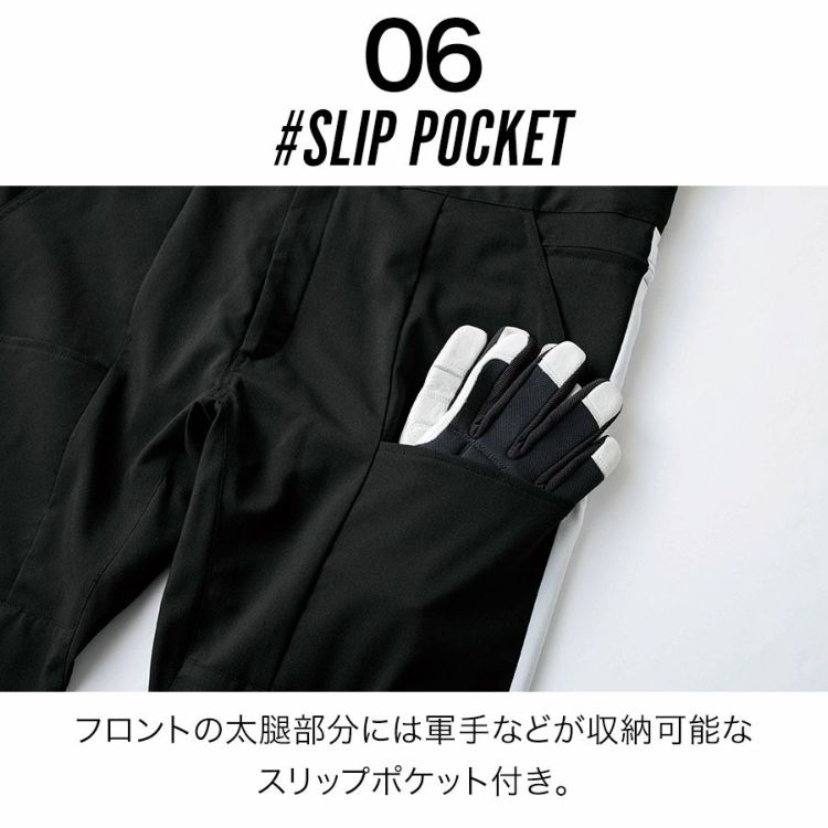 スペックはプロ仕様で、東レ㈱の高機能素材 「ライトフィックスR」を採用、安心安全の帯電 防止生地で軽量さとストレッチ性も備えています。