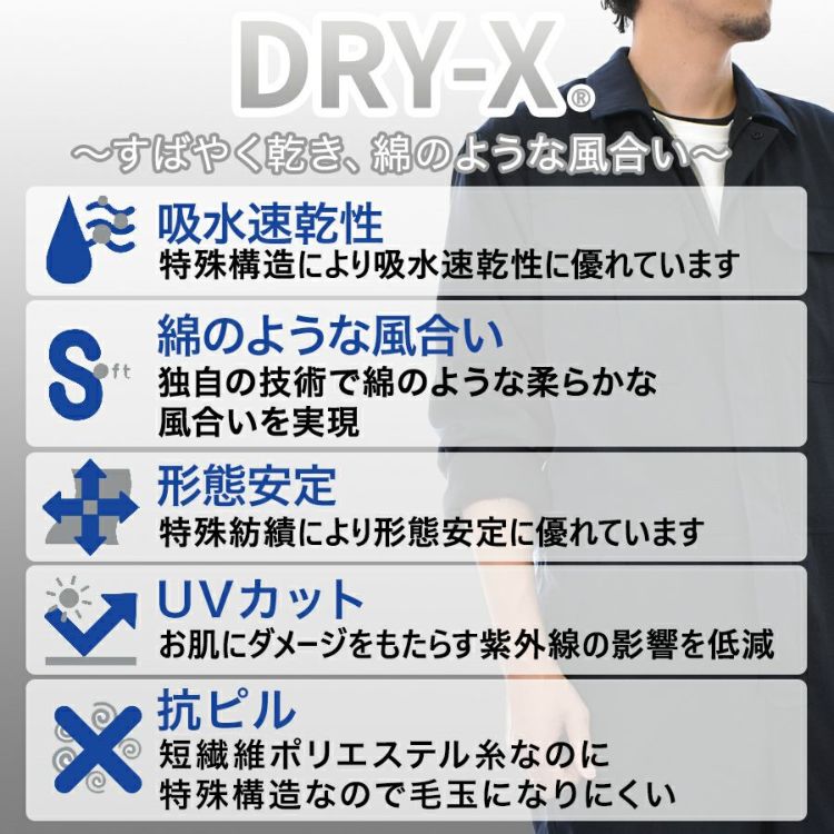 ■驚異の速乾性を誇る「DRY-X」生地を使用したツナギ。