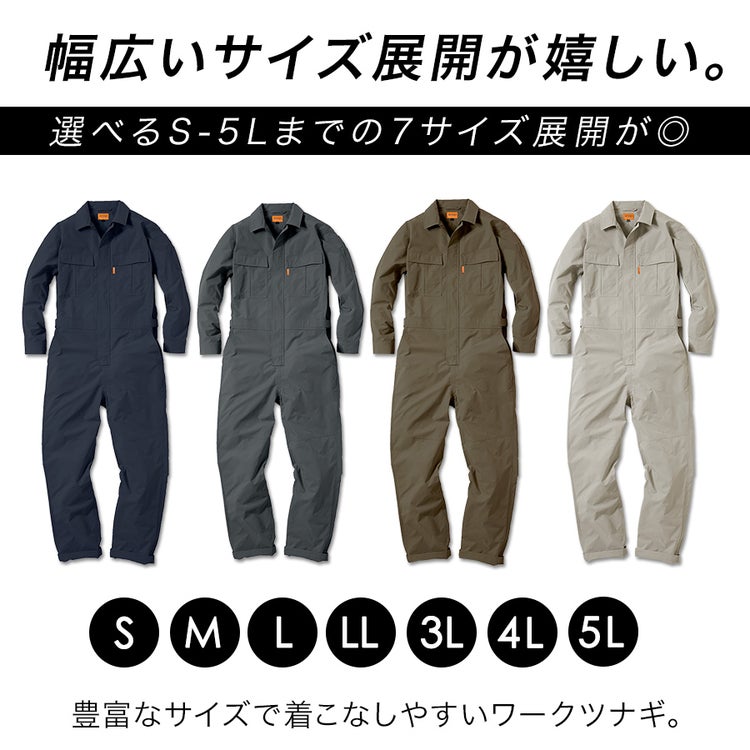 ストレッチ リップストップ ツナギ つなぎ ジャンプスーツ オーバーオール 吸汗速乾 ポリエステル 軽量 S M L LL 3L 4L 5L 仕事 作業着 作業 ワークウェア 現場 DIY キャンプ 釣り バイク ツーリング 作業 アウトドア カジュアル おしゃれ 20代 30代 40代 50代 60代 春夏 秋冬 春 夏 秋