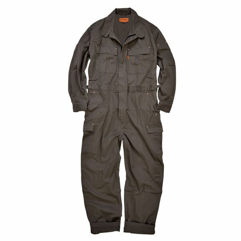 綿100%の適度な肉厚生地と、ツナギでは実は珍しい両サイドのカーゴポケットが付いたプロノの超ロングセラーつなぎ。